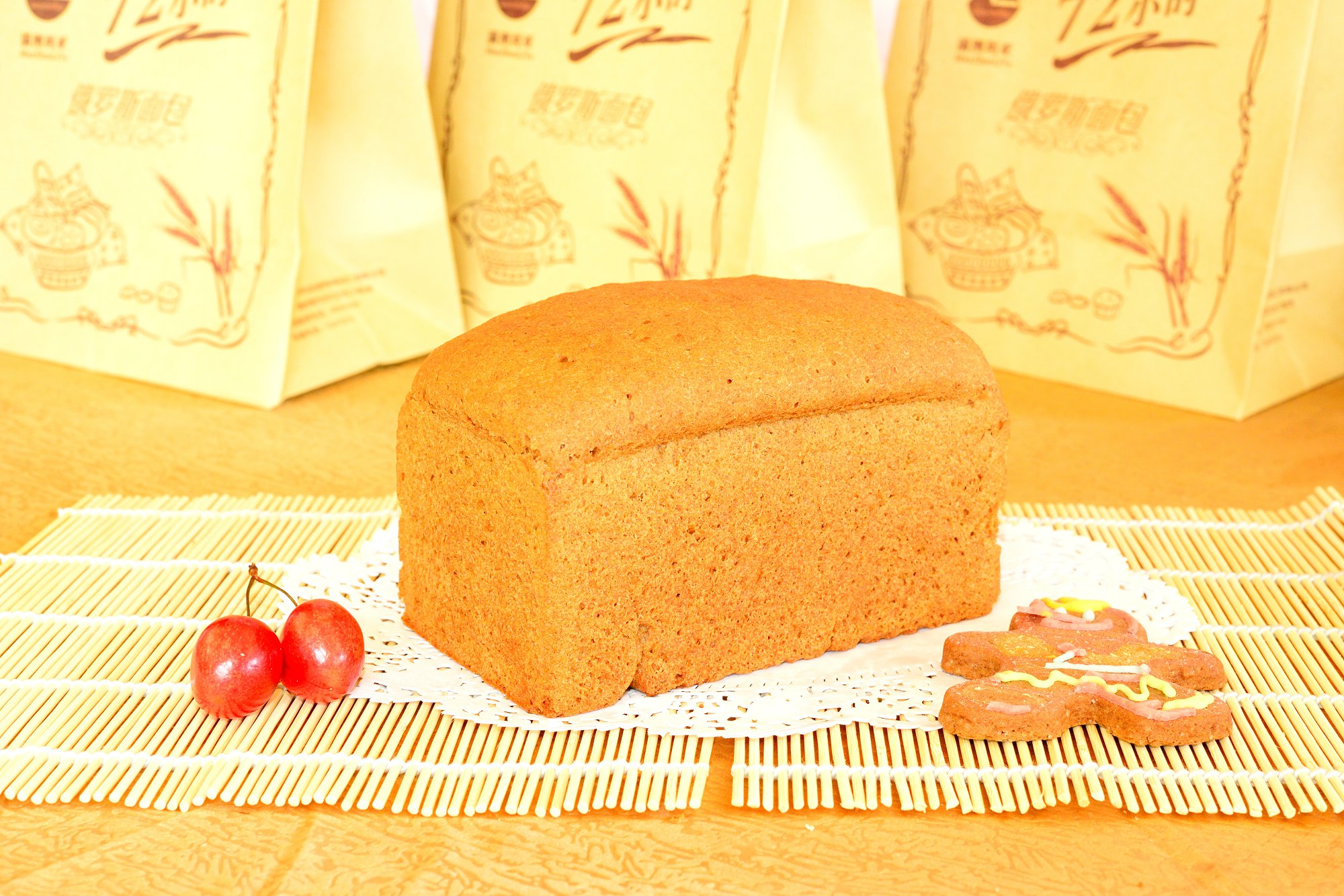 整體呈長(zhǎng)方體樣式,少油少糖,色澤偏黑,用俄羅斯黑面粉制作而成,比較有俄羅斯列巴特色。
