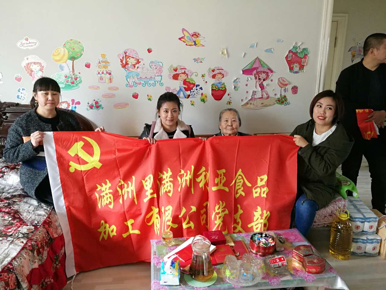 此次走訪慰問活動滿洲利亞個私黨支部黨員和宏德醫(yī)藥黨支部黨員共同參與,為貧困戶送去了 面粉、食用油、新鮮月餅,還有滿洲里利亞個私黨支部提供的自己生產(chǎn)的香腸、宏德醫(yī)藥個私黨支部提供了藥品現(xiàn)金券等生活物資。